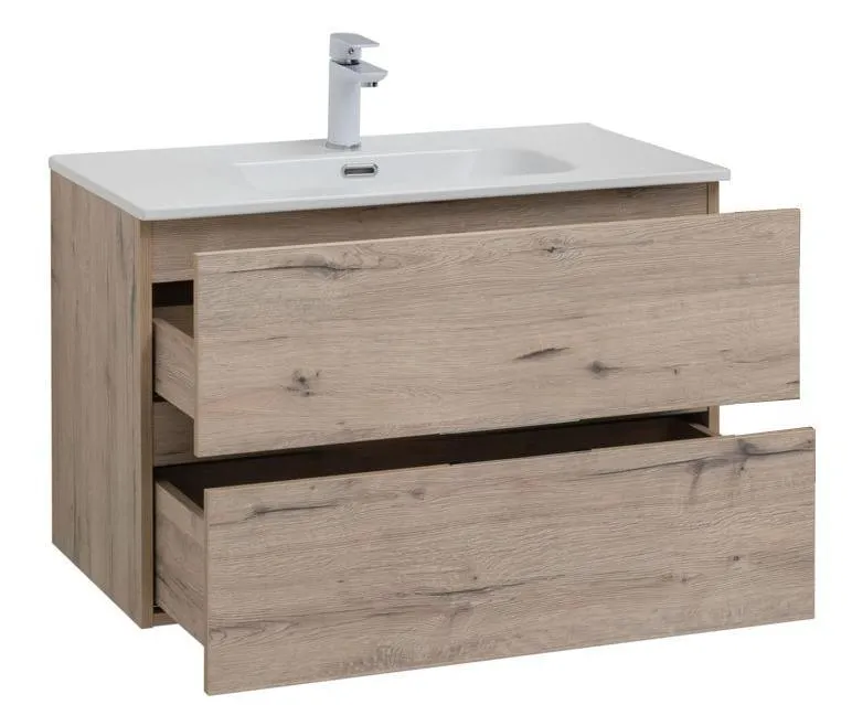 Тумба-умывальник подвесная Aquanet Алвита New 80 дуб веллингтон 00277517+00254364