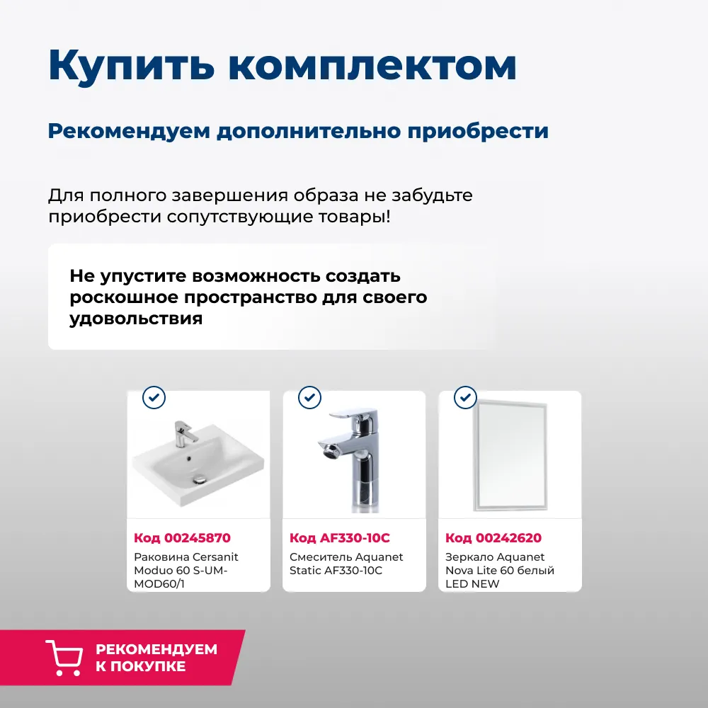 Характеристики товара Тумба-умывальник подвесная Aquanet Беркли 60 белый/дуб рошелье 00254289+S-UM-MOD60/1