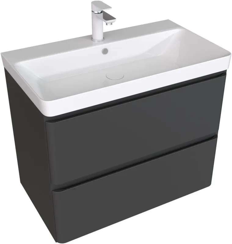 Тумба-умывальник подвесная Aquanet Эмбер 80 чёрный матовый 00330468+11080-KL