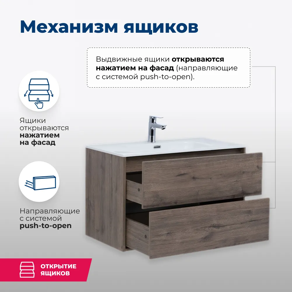 Тумба-умывальник подвесная Aquanet Lino 100 (Flat) дуб веллингтон 00287545+00254365
