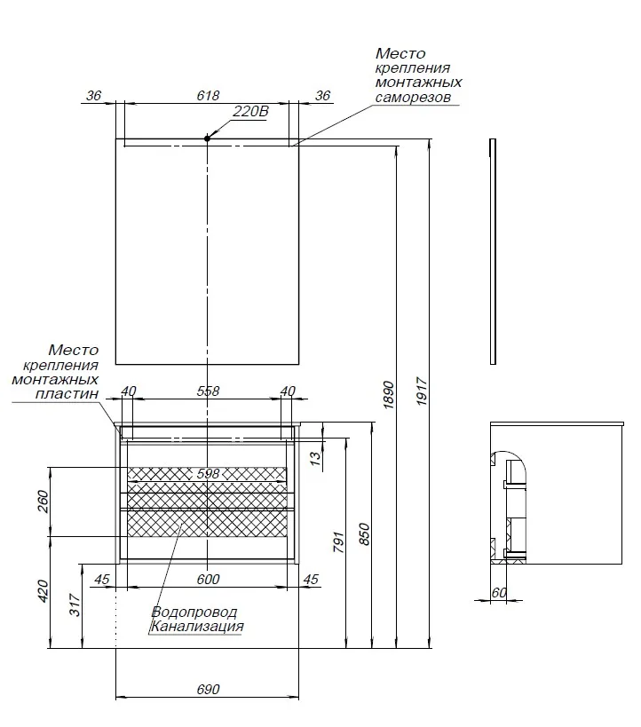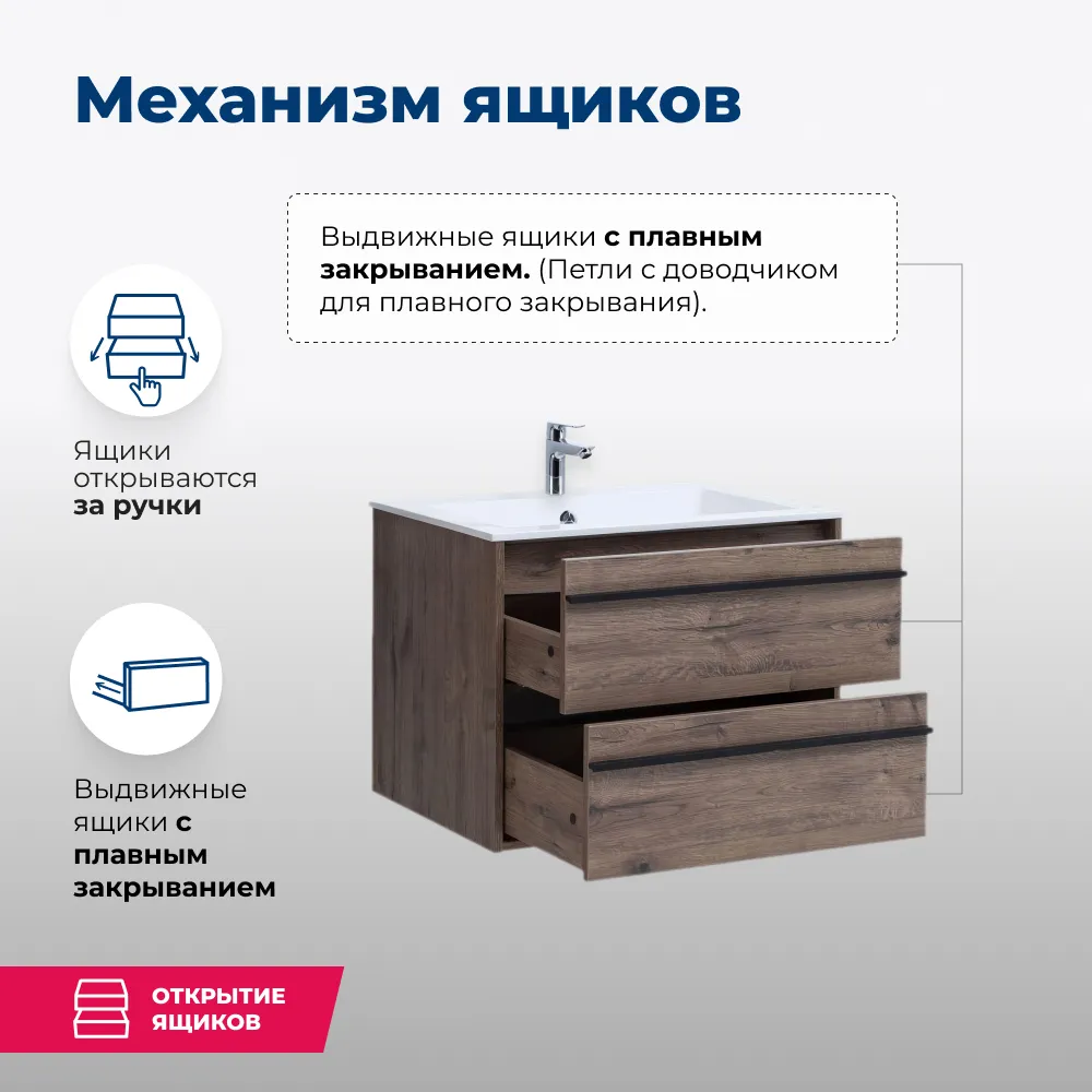 Характеристики товара Тумба-умывальник подвесная Aquanet Lino 70 дуб веллингтон 00253911+