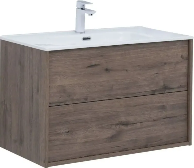 Тумба-умывальник подвесная Aquanet Lino 80 (Flat) дуб веллингтон 00287543+00254364