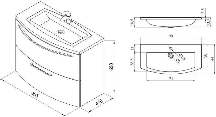 Характеристики товара Тумба-умывальник подвесная Aquanet Лонг 120 белый глянец 00187921+НФ-00006753