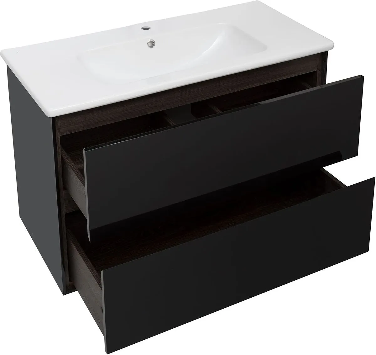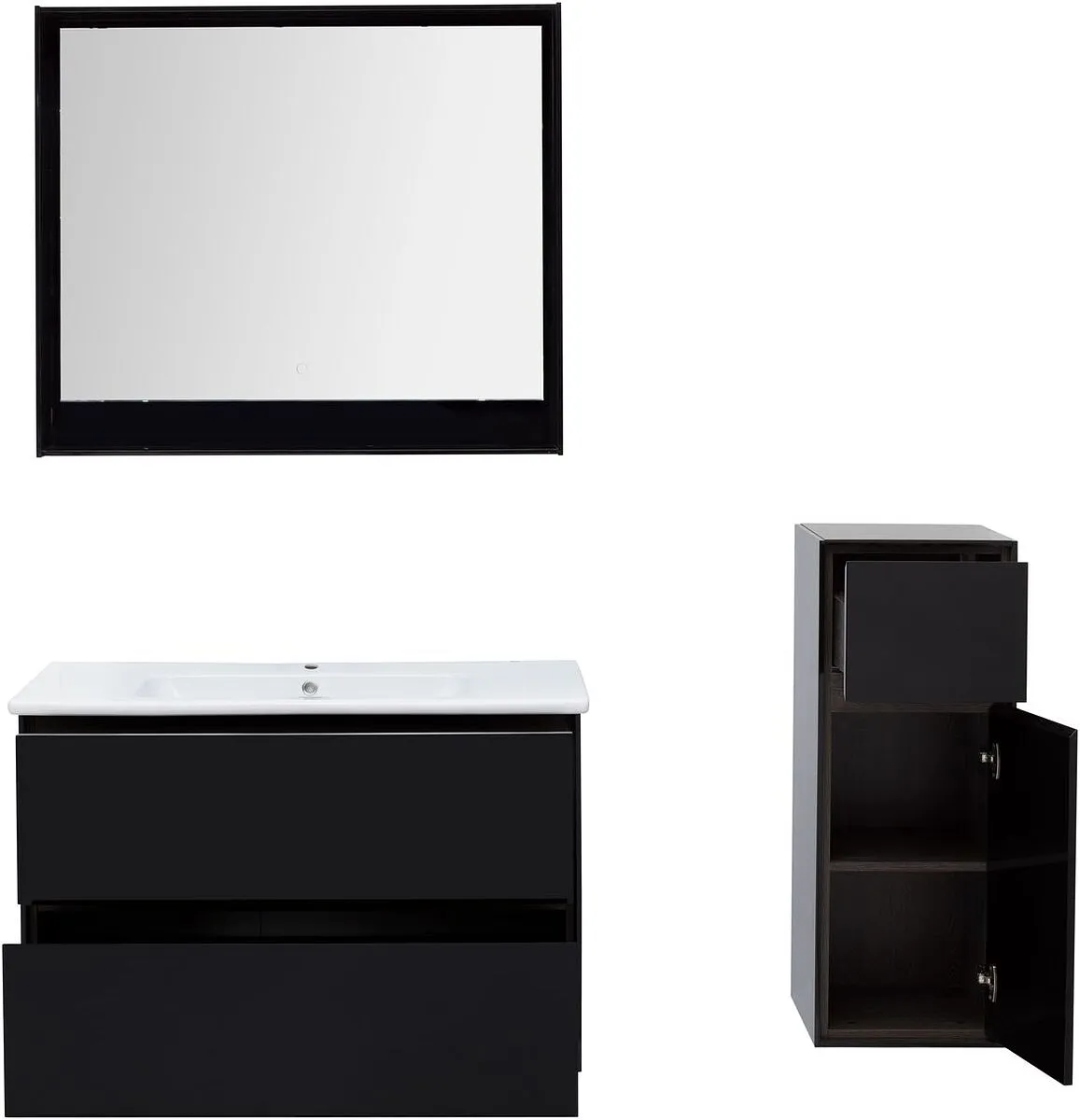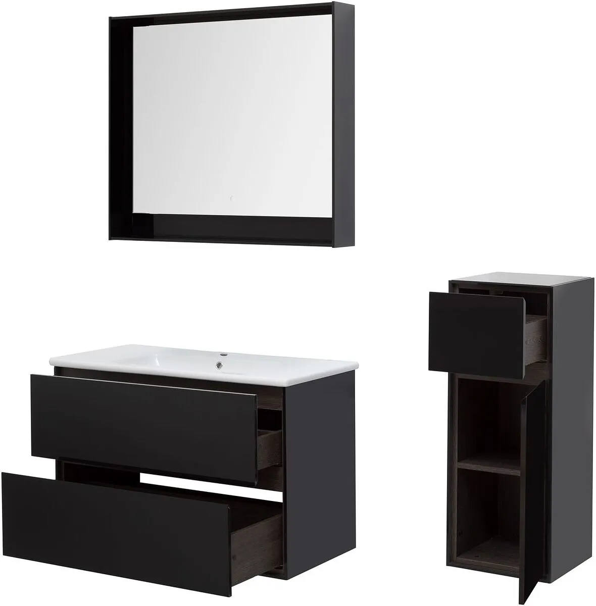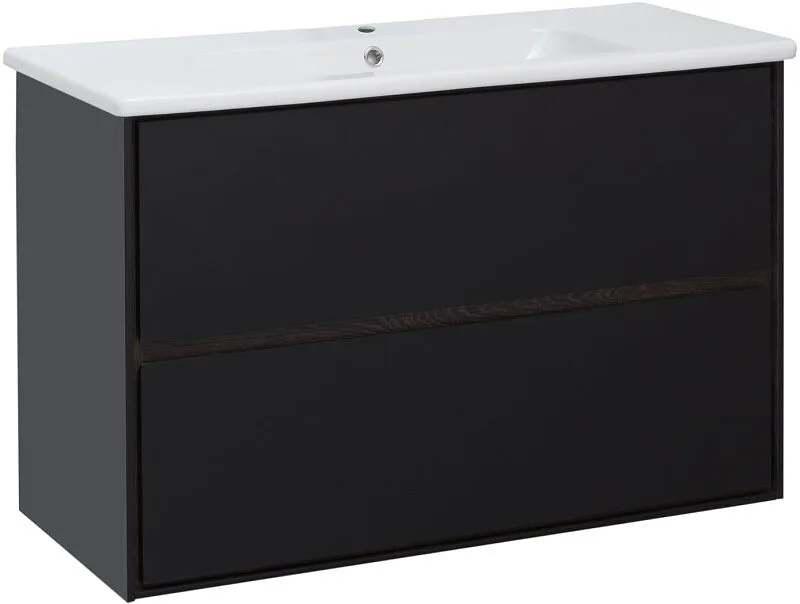 Тумба-умывальник подвесная Aquanet Милан 100 чёрный глянец 00269299+00254365