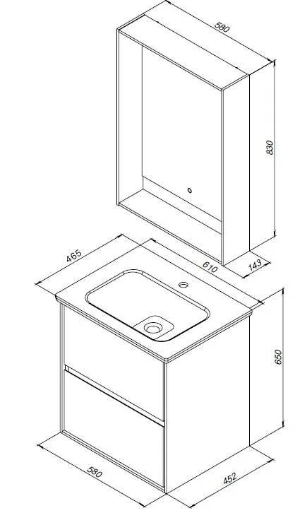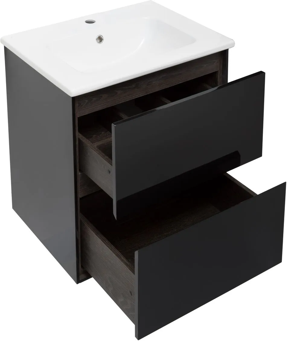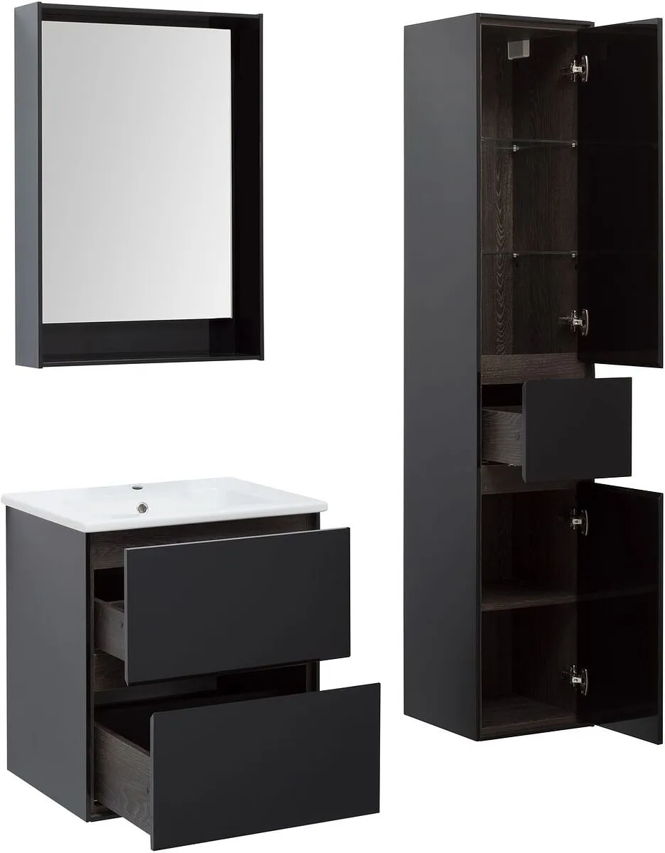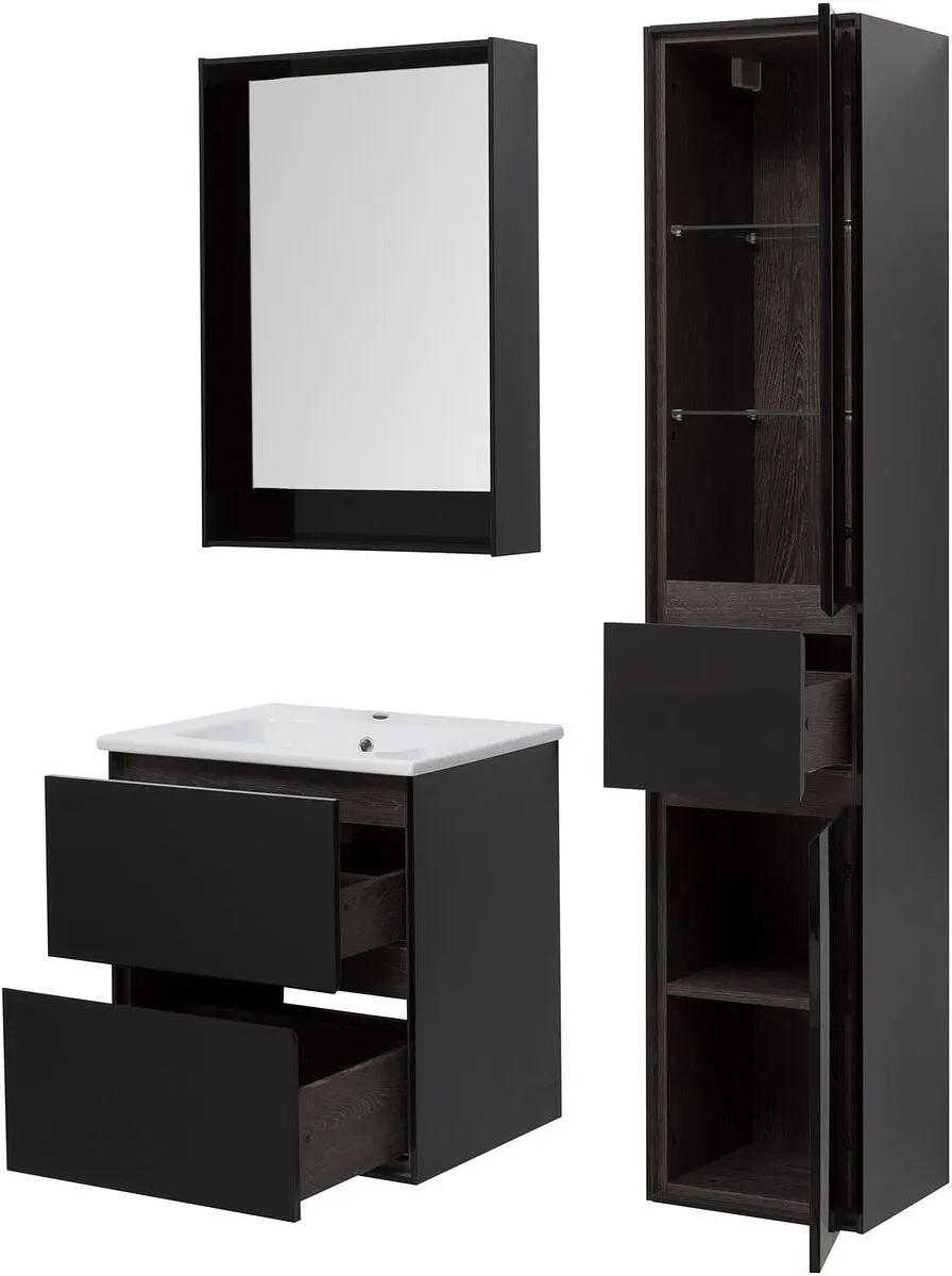 Тумба-умывальник подвесная Aquanet Милан 60 чёрный глянец 00269306+00254363