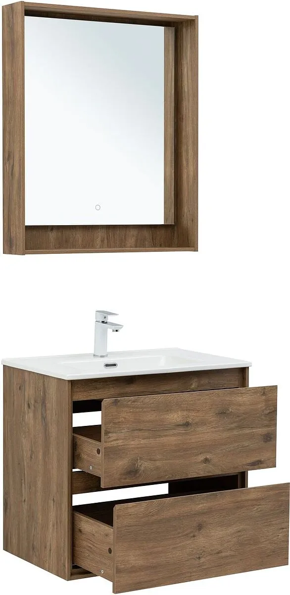 Характеристики товара Тумба-умывальник подвесная Aquanet Милан 70 дуб рустикальный 00336378+00284027