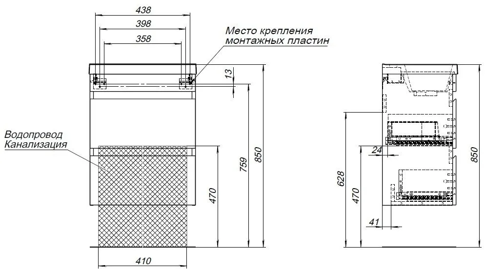 Тумба-умывальник подвесная Aquanet Нота New 50 дуб светлый 00334196+00204095