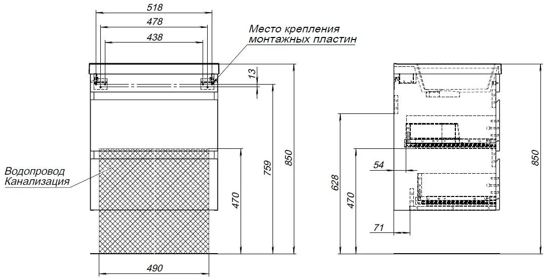 Характеристики товара Тумба-умывальник подвесная Aquanet Нота New 60 дуб светлый 00334197+00204117