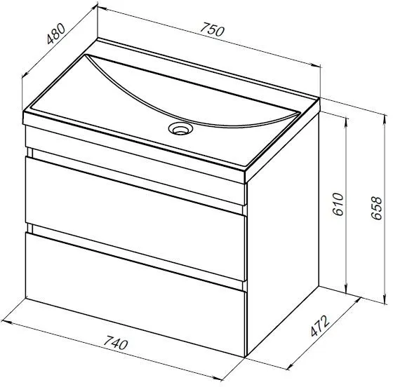 Характеристики товара Тумба-умывальник подвесная Aquanet Нота New 75 белый глянец 00335418+00281221