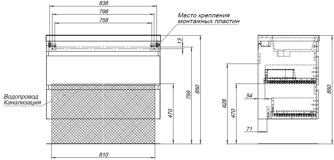 Характеристики товара Тумба-умывальник подвесная Aquanet Нота New 90 дуб холден 00334205+00204119