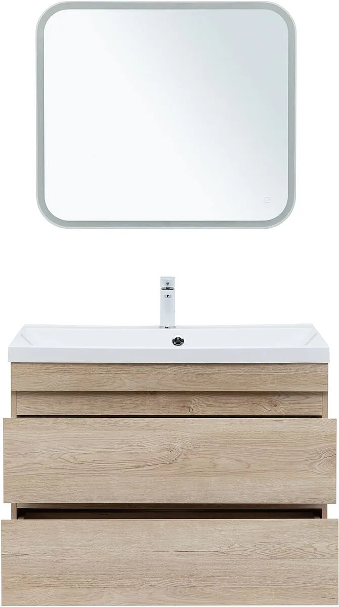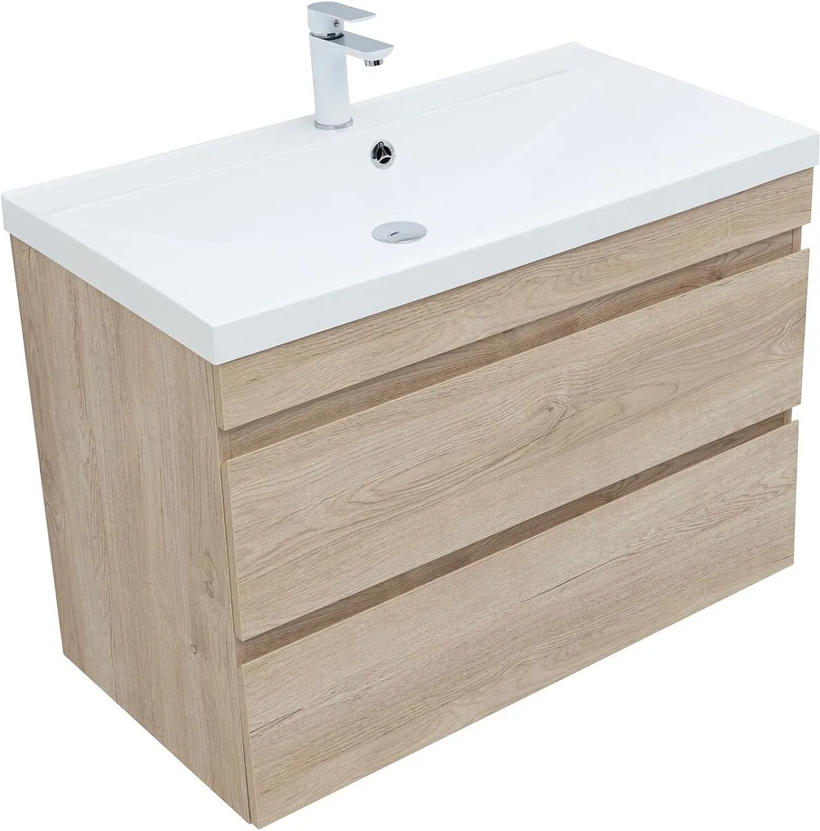 Тумба-умывальник подвесная Aquanet Нота New 90 дуб светлый 00334199+00204119