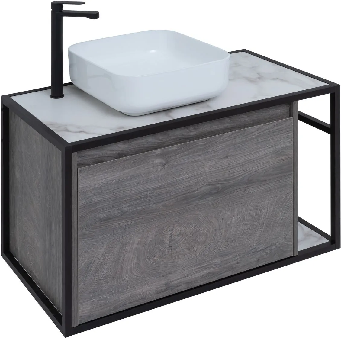 Тумба-умывальник подвесная Aquanet Nova Lite LOFT 90 L дуб рошелье 00261656+