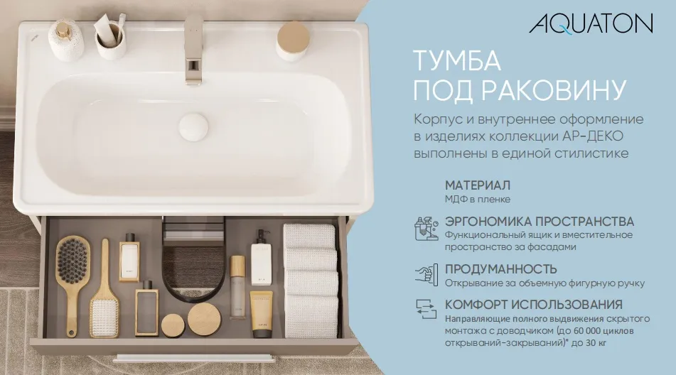 Характеристики товара Тумба-умывальник подвесная Aquaton Ар-Деко 85 кашемир 1A2804K1DD6E0