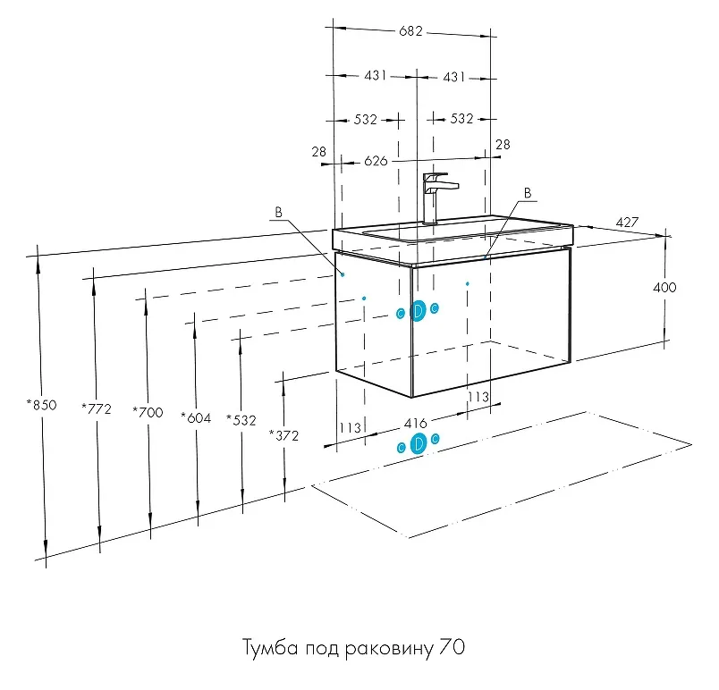 Характеристики товара Тумба-умывальник подвесная Aquaton Асти 70 белый матовый/белый глянец 1A2630K0AX2B0