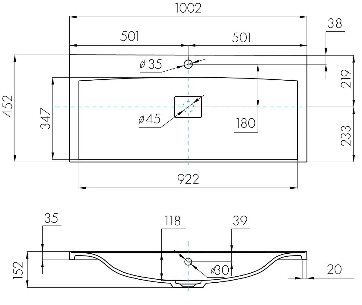 Форма раковиныпрямоугольная
