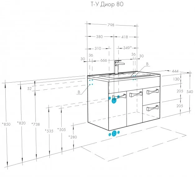 Характеристики товара Тумба-умывальник подвесная Aquaton Диор 80 белый 1A1678K3DR010