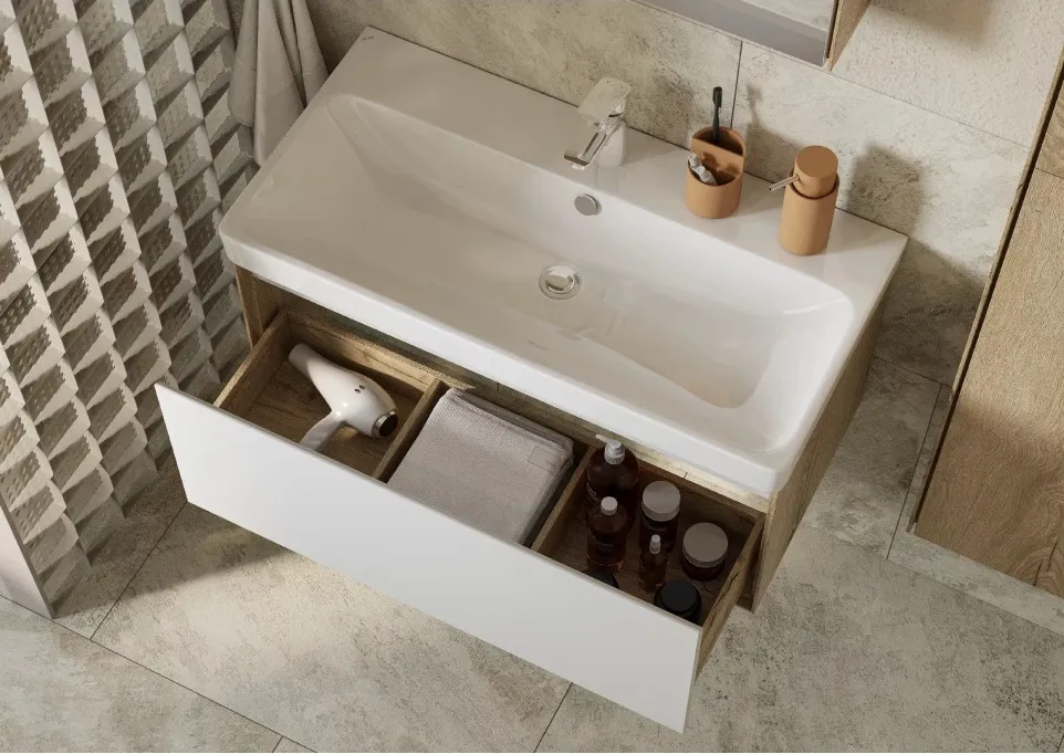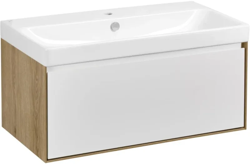Тумба-умывальник подвесная Aquaton Либерти 90 дуб эльвезия/белый глянец 1A2799K0LYC70