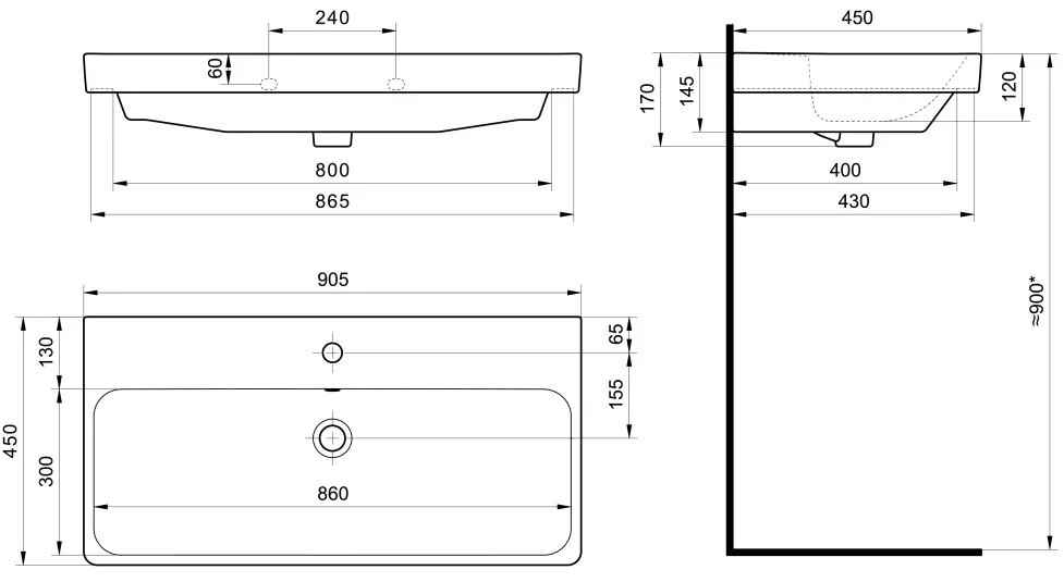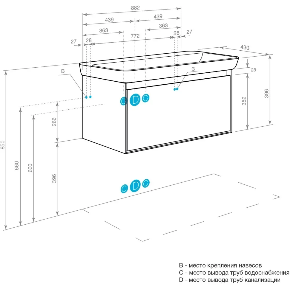 Характеристики товара Тумба-умывальник подвесная Aquaton Либерти 90 дуб эльвезия/белый глянец 1A2799K0LYC70