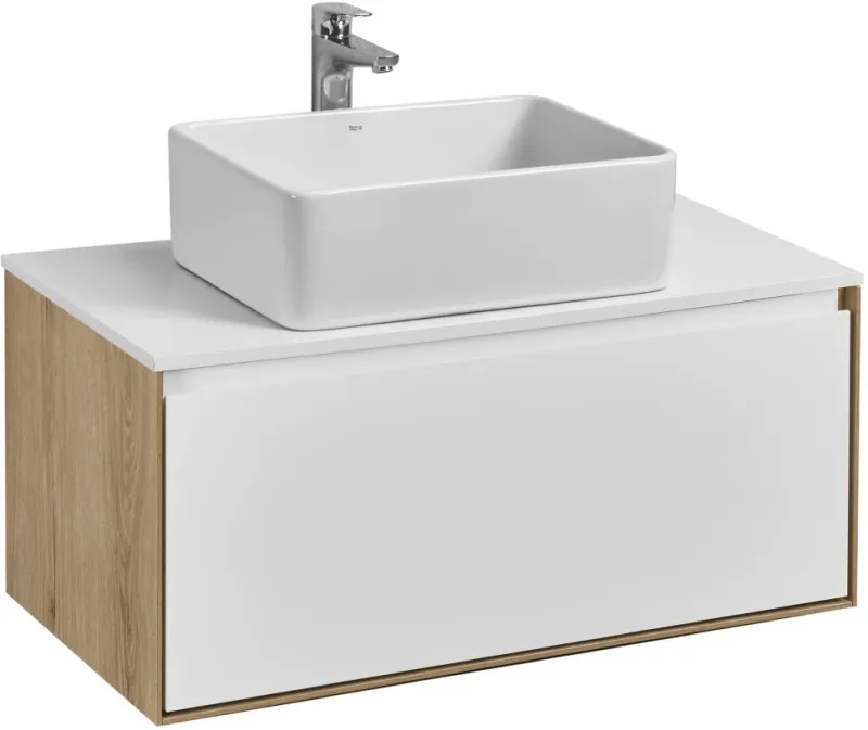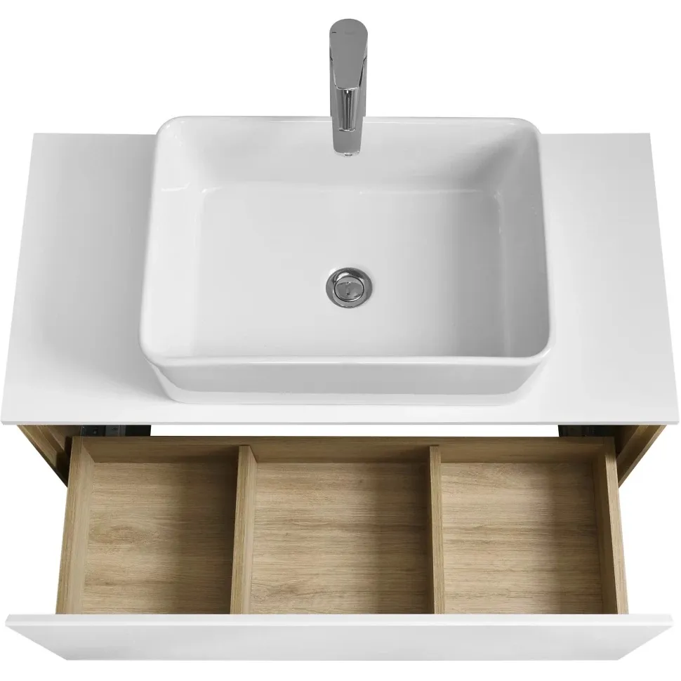 Тумба-умывальник подвесная Aquaton Либерти 90 дуб эльвезия/белый глянец 1A2799K1LY010