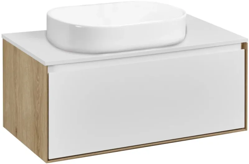 Тумба-умывальник подвесная Aquaton Либерти 90 дуб эльвезия/белый глянец 1A2799K3LY010