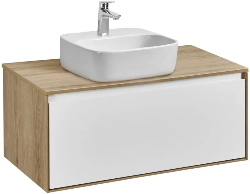 Тумба-умывальник подвесная Aquaton Либерти 90 дуб эльвезия/белый глянец 1A2799K4LYC70