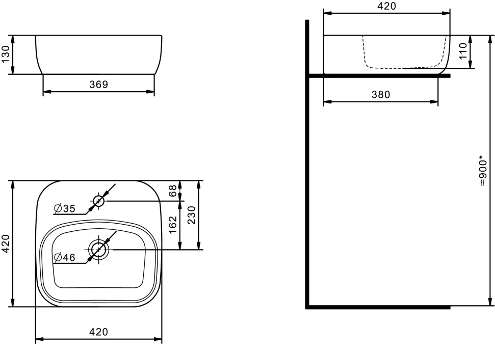 Форма раковиныпрямоугольная