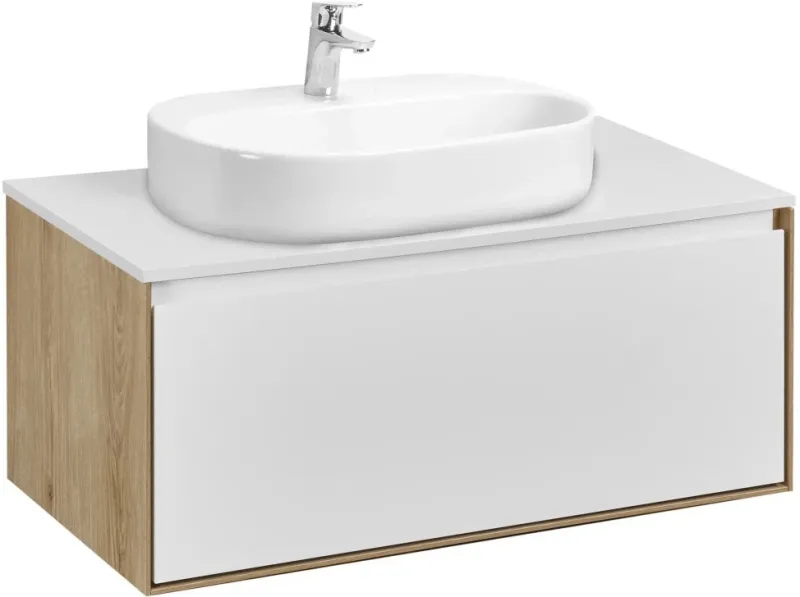 Тумба-умывальник подвесная Aquaton Либерти 90 дуб эльвезия/белый глянец 1A2799K5LY010
