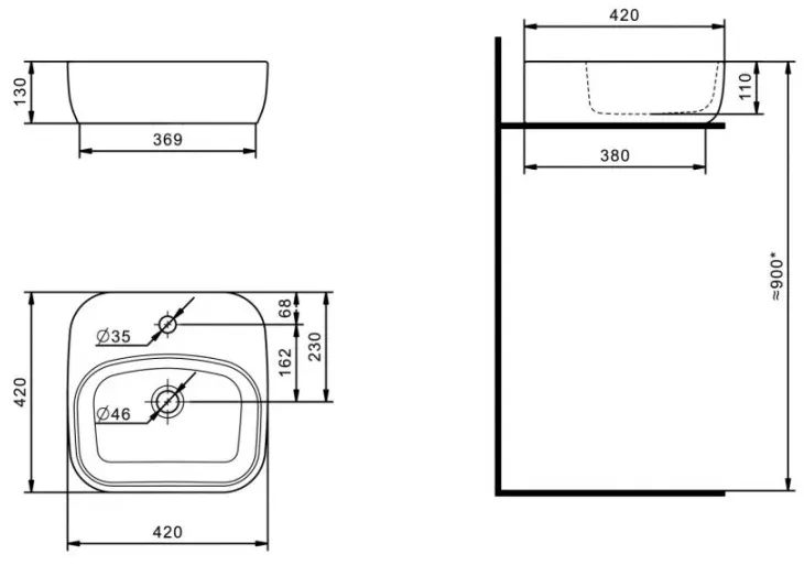 Форма раковиныпрямоугольная