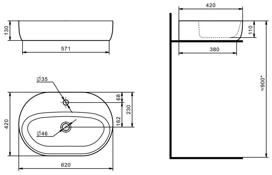 Форма раковиныовальная