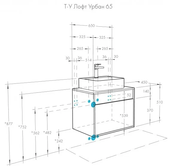 Характеристики товара Тумба-умывальник подвесная Aquaton Лофт Урбан 65 графит/орегон 1A2540K5LQX60