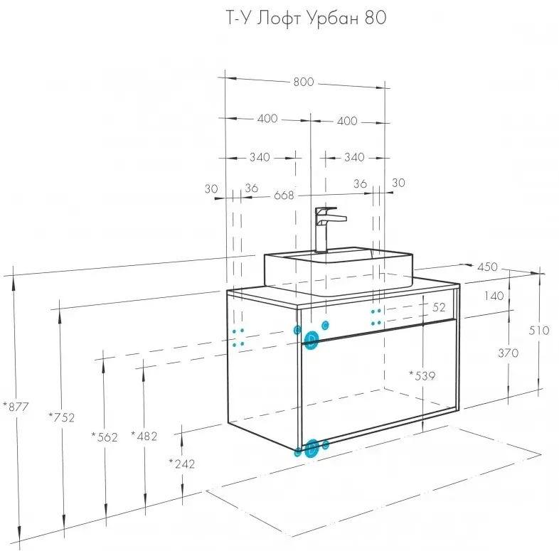 Характеристики товара Тумба-умывальник подвесная Aquaton Лофт Урбан 80 графит/орегон 1A2476K5LQX60
