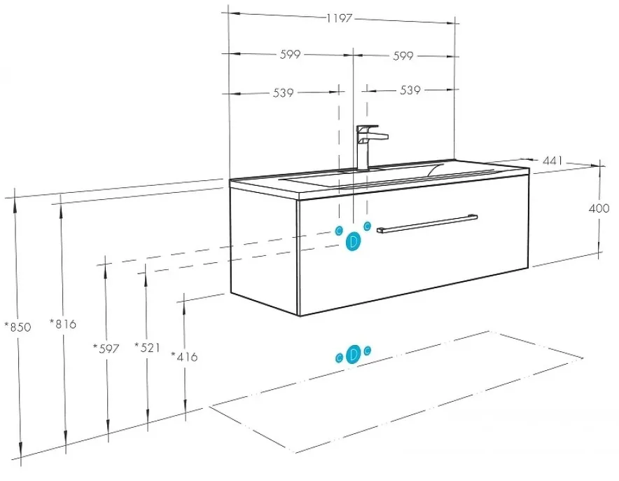 Характеристики товара Тумба-умывальник подвесная Aquaton Мадрид 120 M белый 1A1687K3MA010