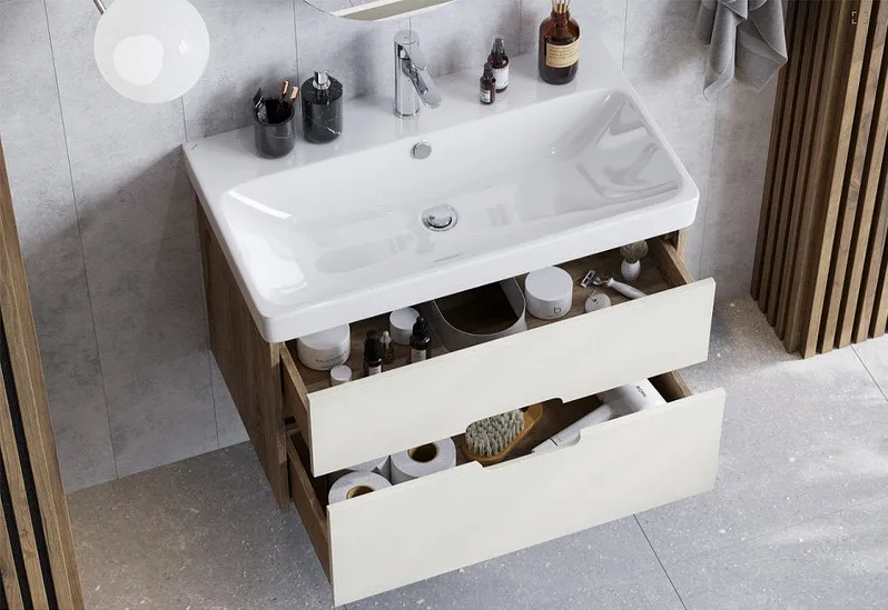 Тумба-умывальник подвесная Aquaton Оливия 80 грей/дуб ойстер 1A2831K0OLUG0