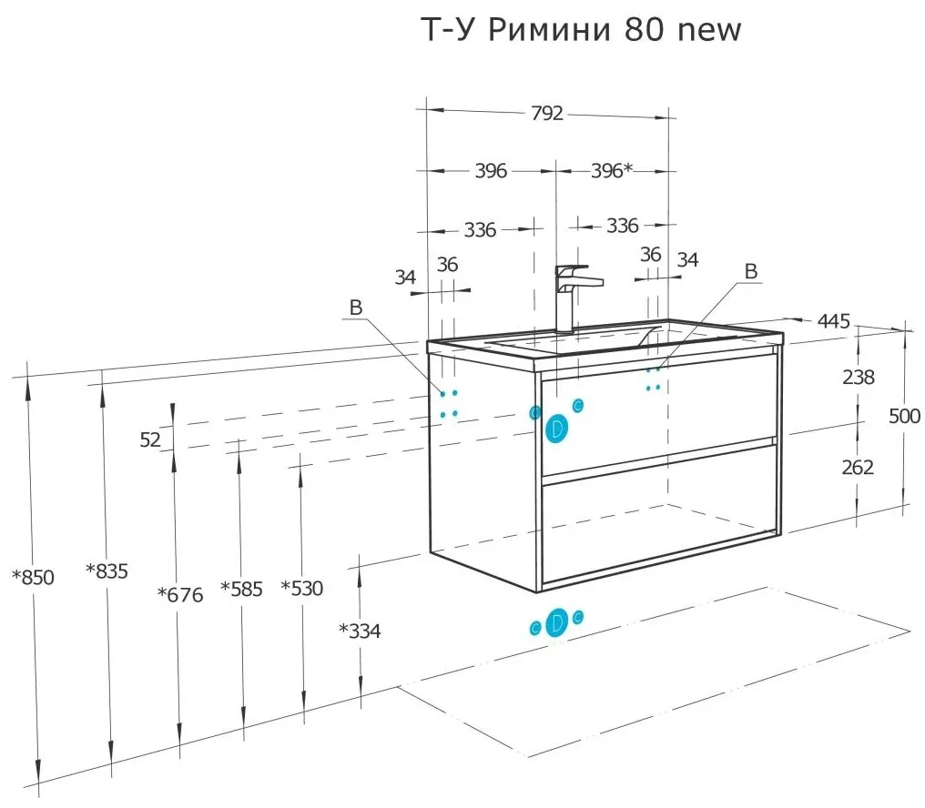 Характеристики товара Тумба-умывальник подвесная Aquaton Римини 80 new белый 1A2267K3RN010