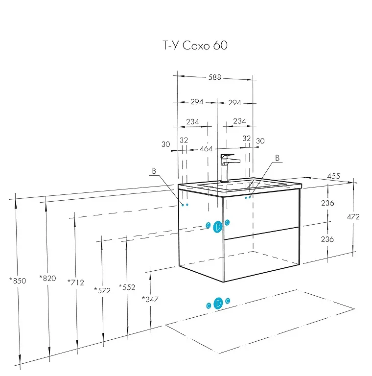 Характеристики товара Тумба-умывальник подвесная Aquaton Сохо 60 белый глянец 1A2580K2AJ010