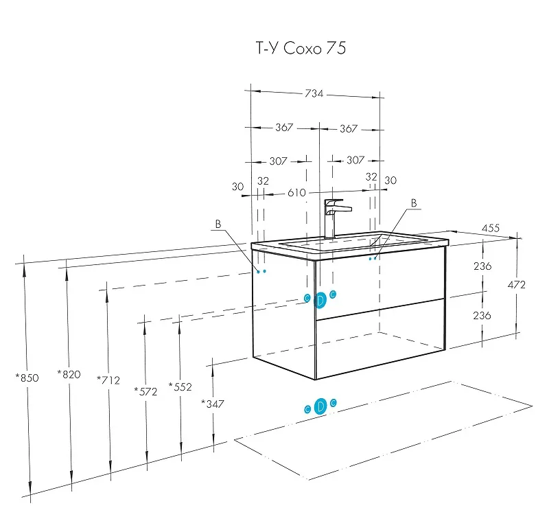 Характеристики товара Тумба-умывальник подвесная Aquaton Сохо 75 белый глянец 1A2581K2AJ010