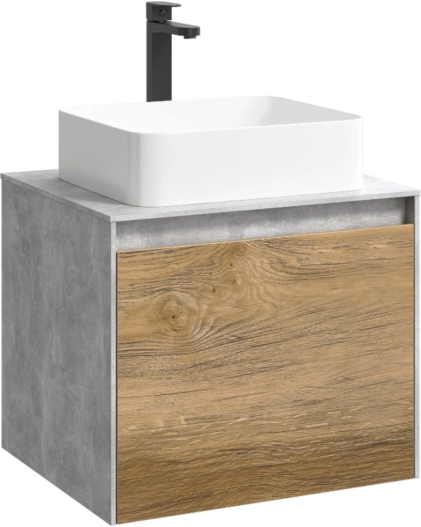 Тумба-умывальник подвесная Aqwella Mobi 60 дуб балтийский/бетон светлый MOB0106BS+MOB0706DB+641945