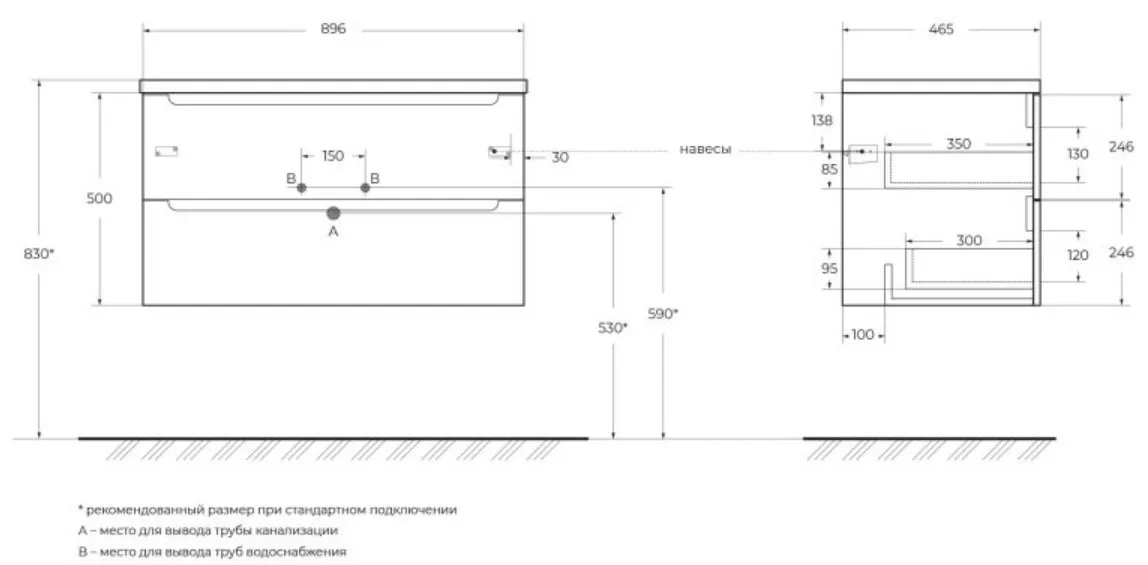 Характеристики товара Тумба-умывальник подвесная BelBagno ETNA 90 Bianco Opaco ETNA-900-2C-SO-BO-P+
