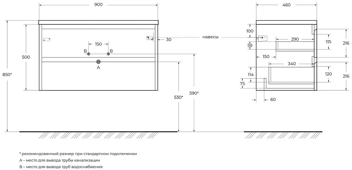 Характеристики товара Тумба-умывальник подвесная BelBagno KRAFT 90 Bianco Opaco KRAFT-900-2C-SO-BO+