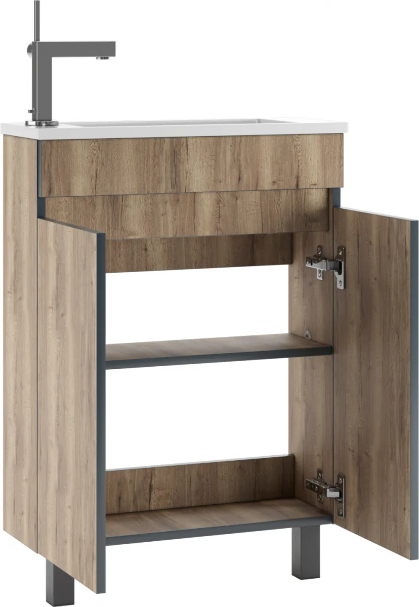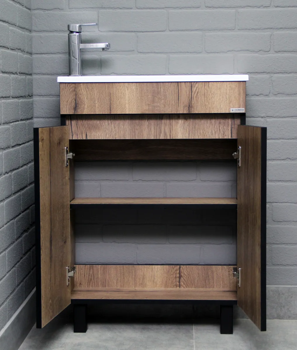 Тумба-умывальник подвесная Домино Dolche 60 дуб галифакс табак DD5403T+4627173210614