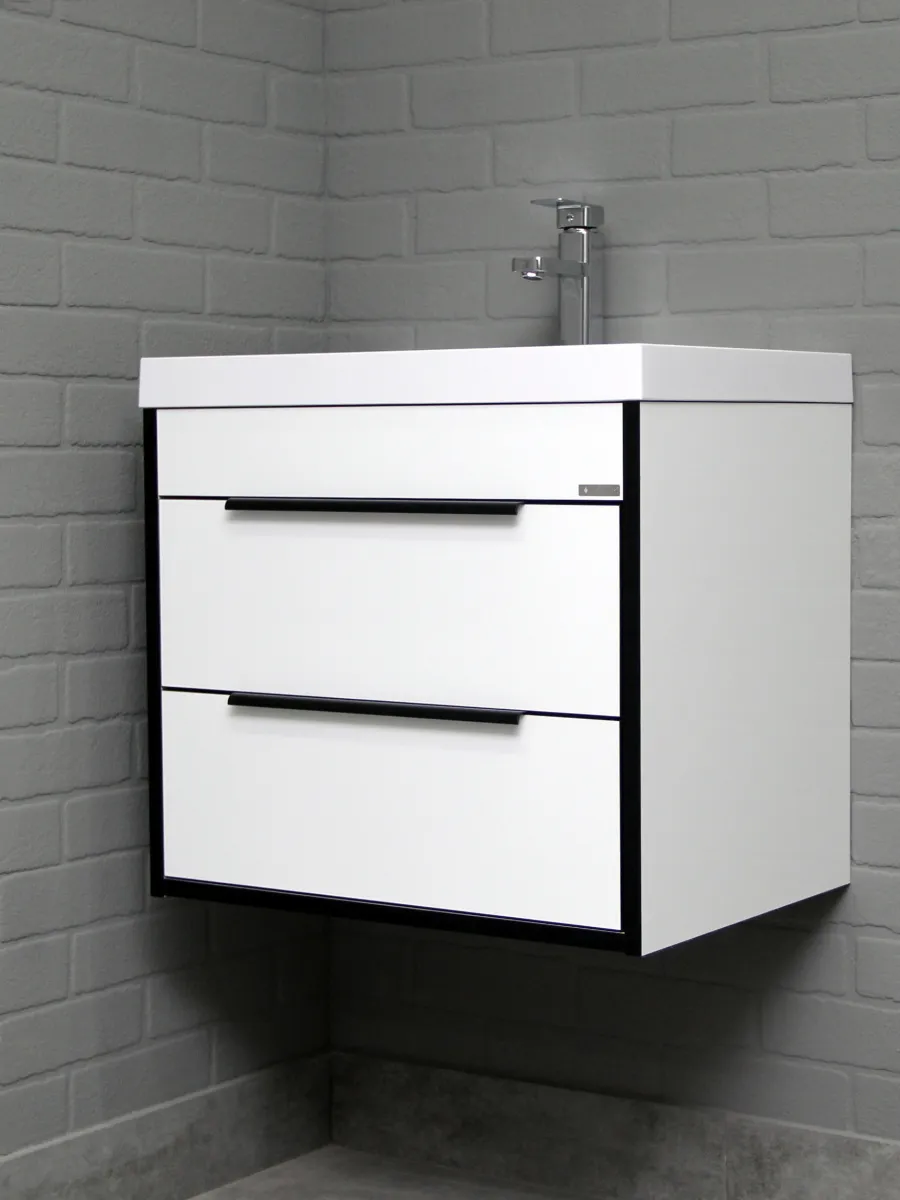 Тумба-умывальник подвесная Домино Forta 60 белый глянец DF2500T+4670142930044