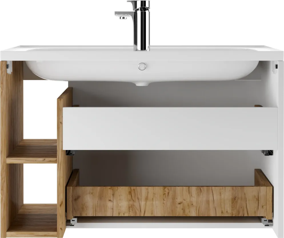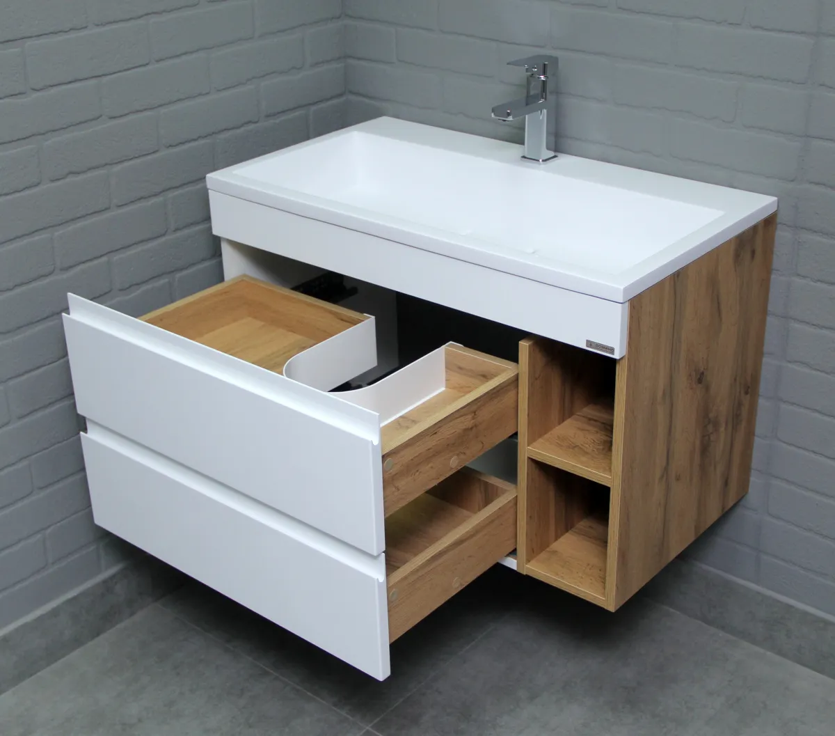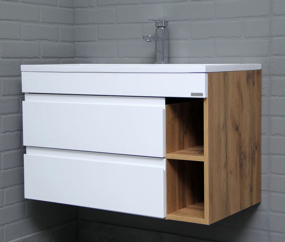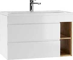 Тумба-умывальник подвесная Домино Frost 80 белый/дуб вотан DF3402T+4670142930273