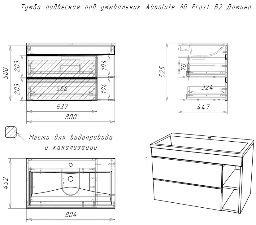 Характеристики товара Тумба-умывальник подвесная Домино Frost 80 белый/дуб вотан DF3402T+4670142930273