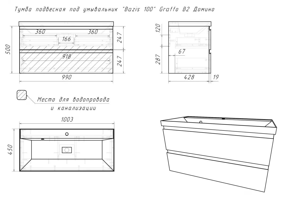 Характеристики товара Тумба-умывальник подвесная Домино Graffo 100 графит DGr2404T+4670142930051