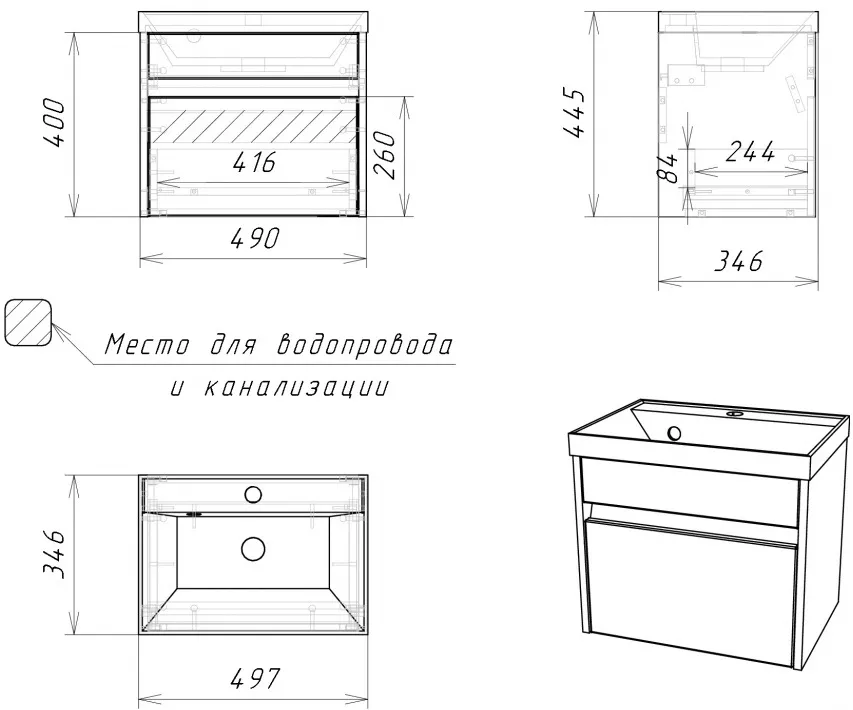 Характеристики товара Тумба-умывальник подвесная Домино Karlo 50 белый/бетон DK5312T+4627173210157