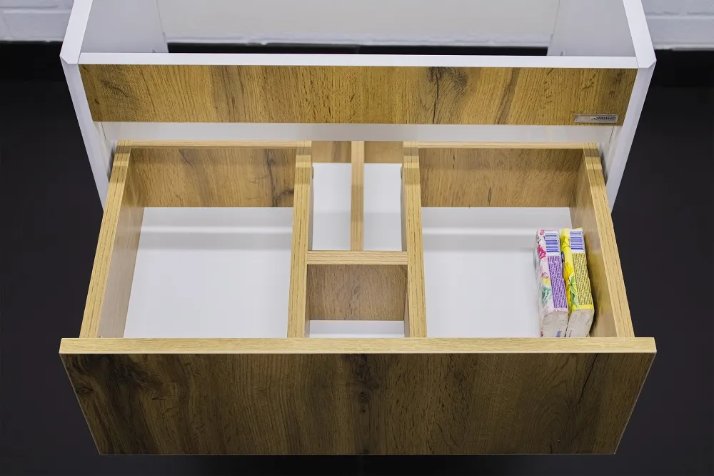 Характеристики товара Тумба-умывальник подвесная Домино Uno 60 дуб вотан/белый DU1512T+WB.FN/Fest/60-C/WHT.G/S1