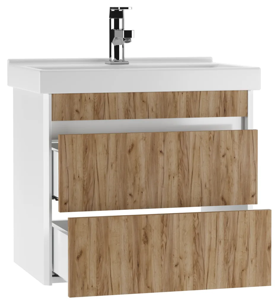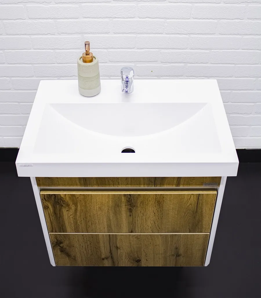 Тумба-умывальник подвесная Домино Uno 60 дуб вотан/белый DU1512T+WB.FN/Fest/60-C/WHT.G/S1