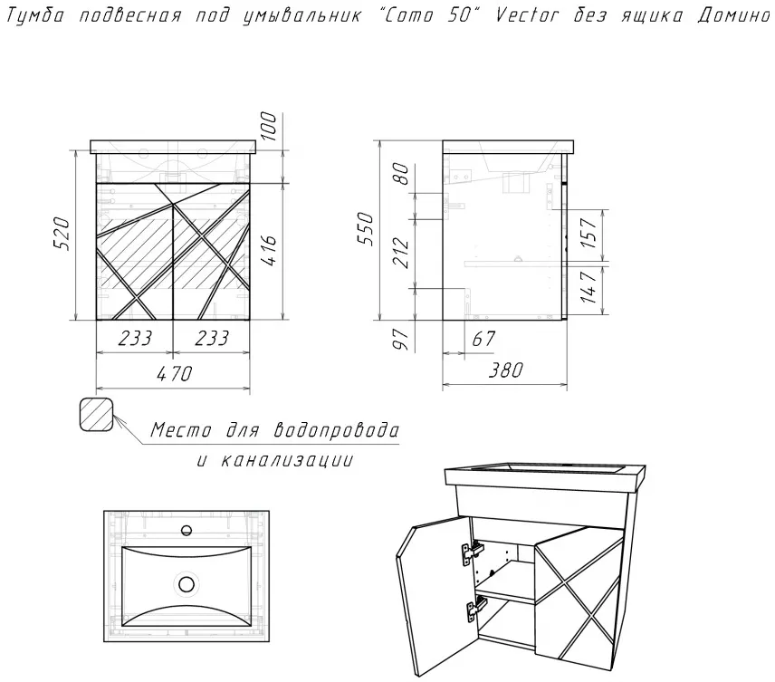 Характеристики товара Тумба-умывальник подвесная Домино Vector 50 метрополитан грей/бетон серый DV6609T+S-UM-COM50/1-w