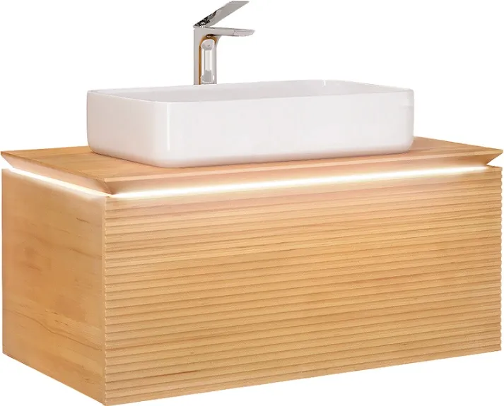 Тумба-умывальник подвесная Jorno Karat 100 бук светлый Kar.01.100/P/BuL+MLN-7050H