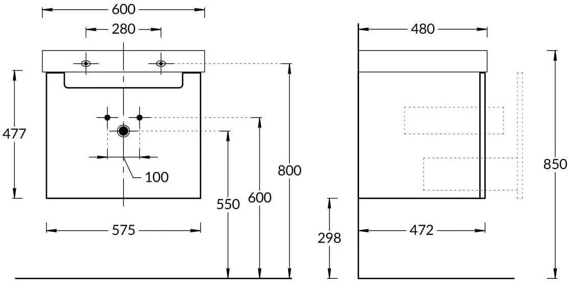 Тумба-умывальник подвесная Kerama Marazzi Buongiorno 60 белый BGN.60.1+1\WHT+BG.wb.60